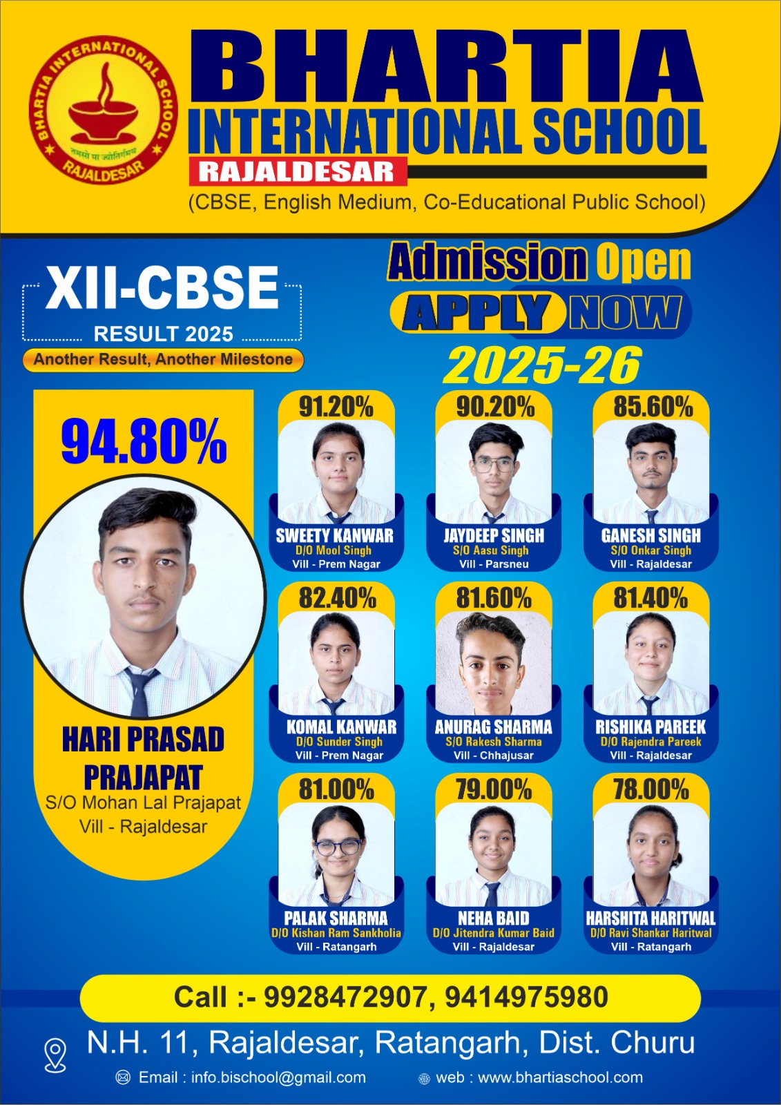 Bhartia International School have a well trained and experienced staff. We will try our best to providing a positive environment where all students can learn, develop and mature while promoting self-esteem, responsibility, and respect for self as well as others. Today school is well known not only in Rajasthan but also beyond the Rajasthan.